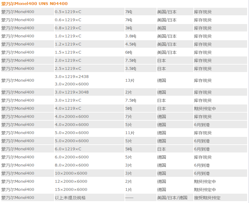 MONEL400 蒙乃爾合金
